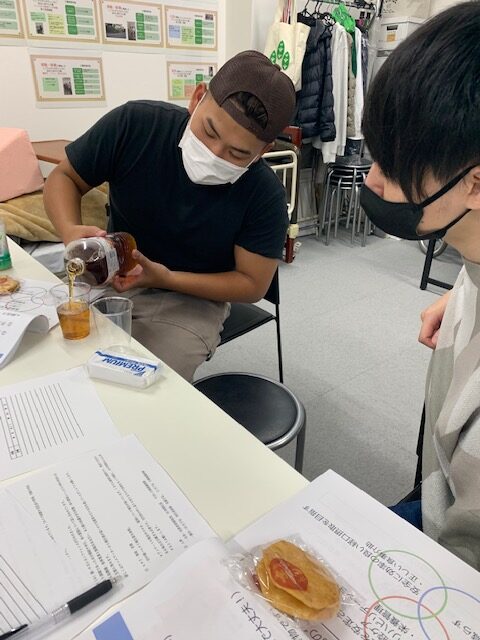 盛大にムセ、涙をこらえ…頑張りました! (純粋にお菓子を楽しむスタッフも…写真探してみてください☆)