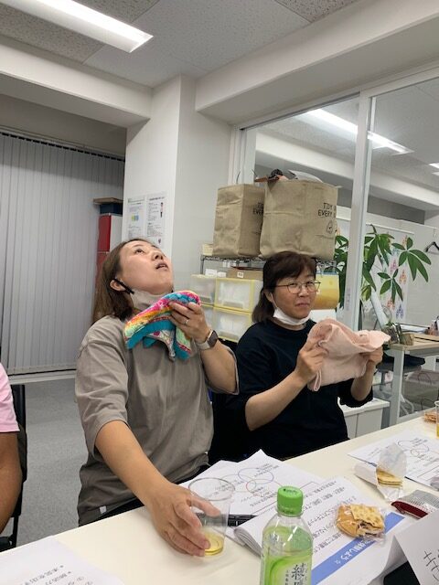 そして、この日のメインイベント? お菓子とお茶で「誤嚥」の体験をしました。